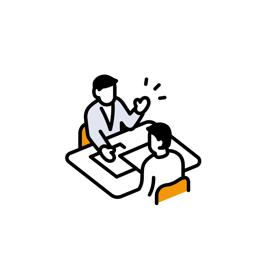 初回のワークセッション後、3週間~1ヶ月に1度の頻度で決めた計画の達成に向けた行動と成果のシェアと、問題解決を行います。